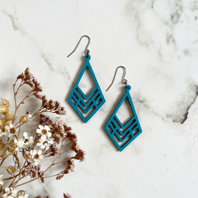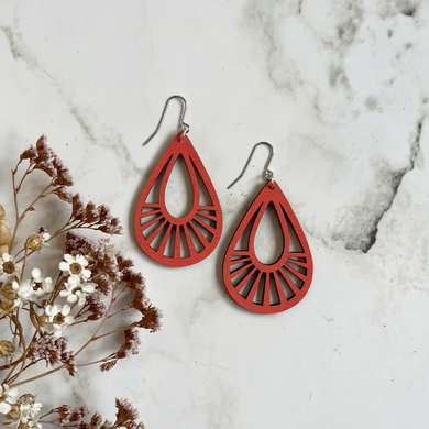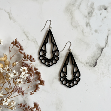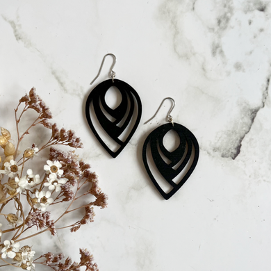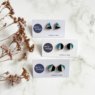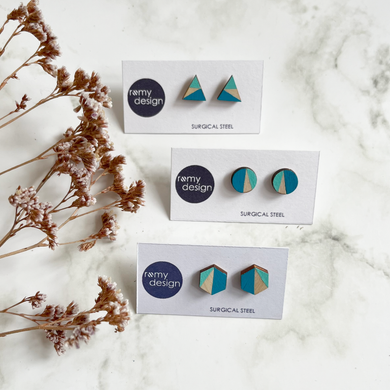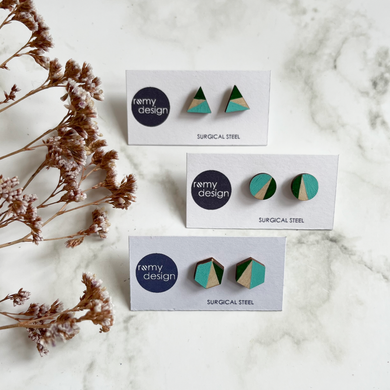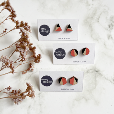 Jewellery, including earrings and necklaces, made from Jesmonite, wood and metal